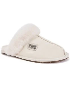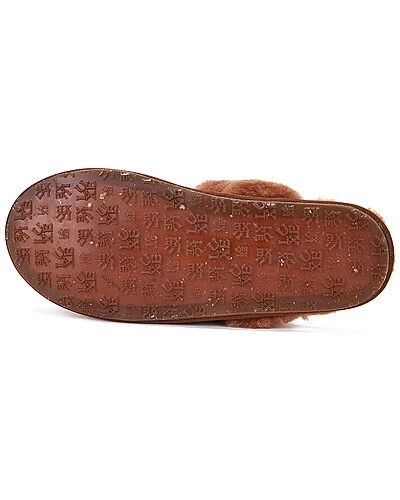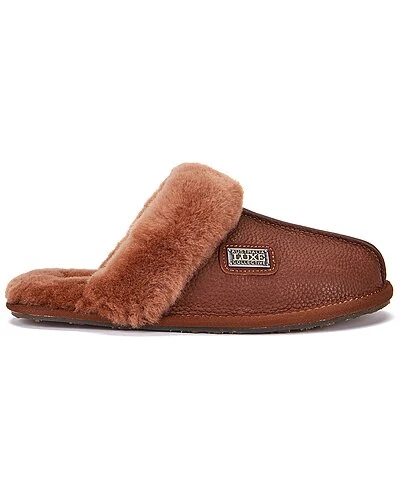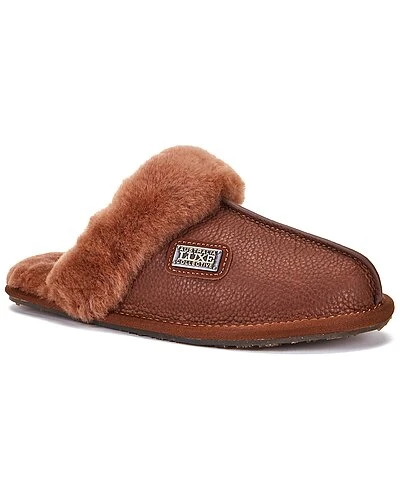 - Closed Mule Buff Sheepskin Slipper in whisky sheepskin and gold-tone hardware with buff leather finish