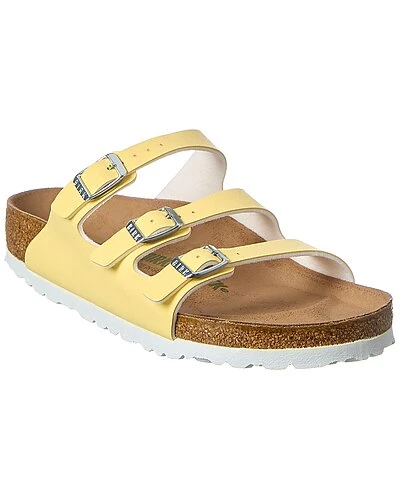 - Florida Fresh Birko-Flor Sandal in brushed vanilla Birko-Flor and silver-tone hardware with buckle accents