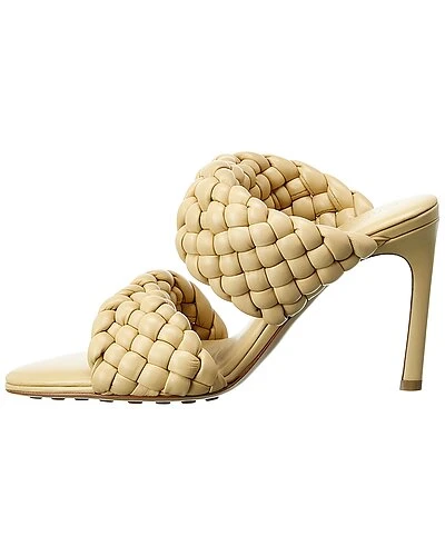 - BV Curve Leather Sandal in beige intrecciato leather with twisted design