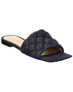 - Padded Denim Sandal in blue padded denim textile with squared toe