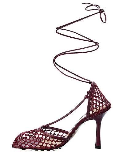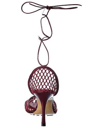 - Stretch Ankle Wrap Leather Sandal in cherry leather with mesh detail