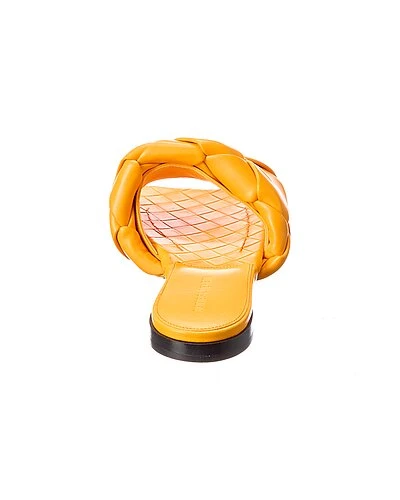 - The Lido Leather Sandal in tangerine leather with padded design and squared toe