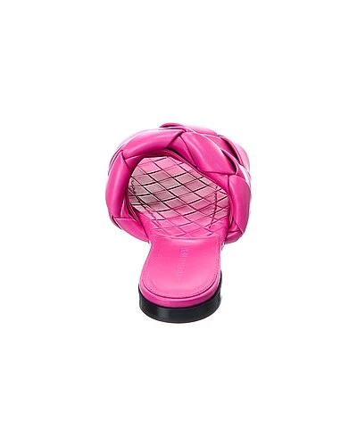 - The Lido Intrecciato Leather Sandal in pink intrecciato leather with squared sole