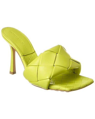 - Lido Intrecciato Leather Sandal in kiwi intrecciato nappa leather with square toe