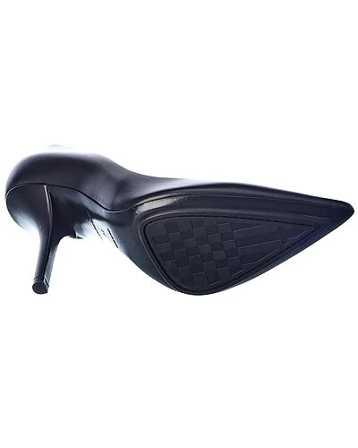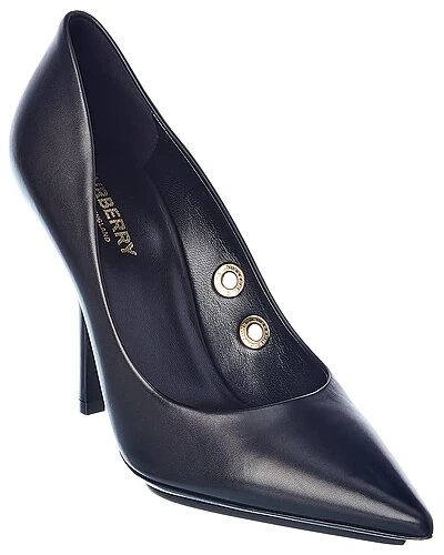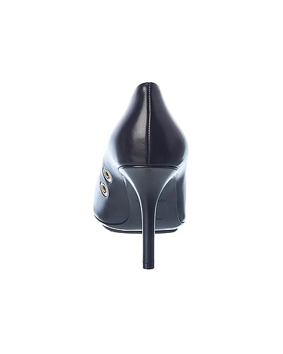 - Eyelet Detail Leather Pump in black leather and gold-tone hardware with grommet accents