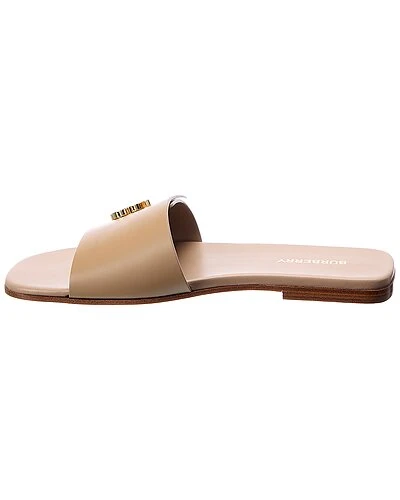 - Leather Sandal in chestnut beige leather with gold-tone monogram accent