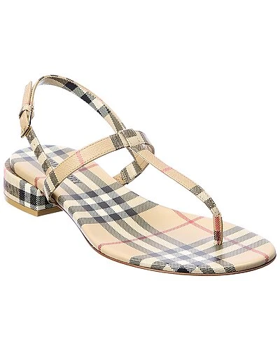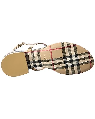 - Vintage Check Coated Canvas Sandal in archive beige coated canvas and gold-tone hardware with thong strap