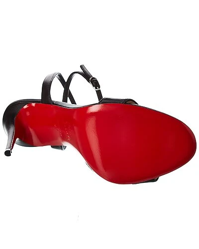 - Loubigirl 100 Leather Sandal in black leather and silver-tone hardware with classic silhouette