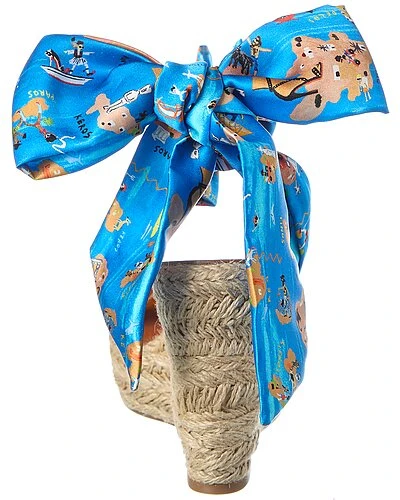 - Monica Du Desert 110 Satin Wedge Sandal in blue printed satin with jute wedge