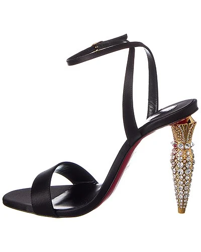 - Lipstrass Queen 100 Satin Sandal in black satin and gold-tone hardware with crystal-embellished sculptural heel