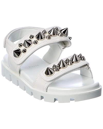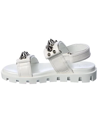- Spikita Cool Leather Sandal in white leather with silver-tone spike embellishments