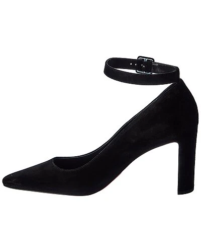 - Suprastrap 85 Suede Pump in black suede and silver-tone hardware with pointy-toe