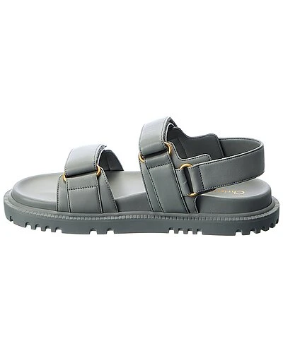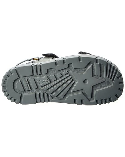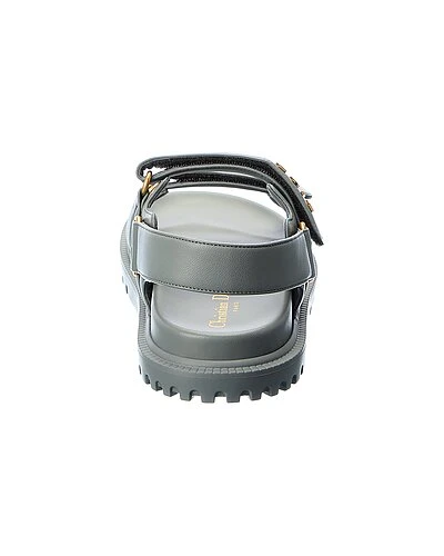 - Dioract Leather Sandal in grey stone leather and gold-tone hardware with logo accent