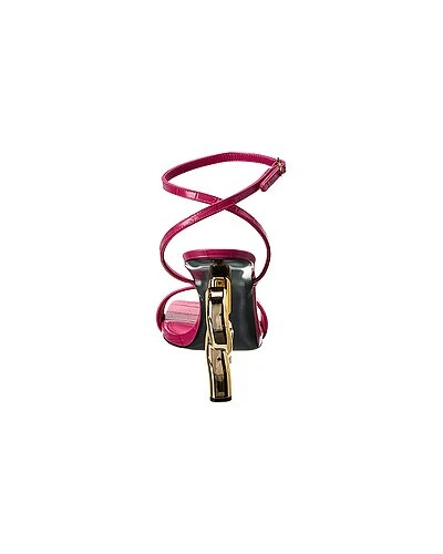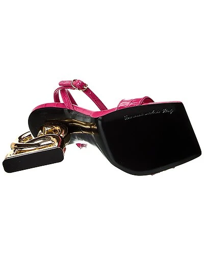 - Croc-Embossed Leather Sandal in pink croc-embossed leather and gold-tone hardware with logo heel