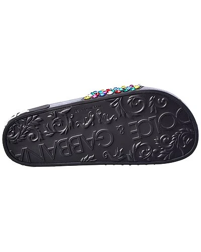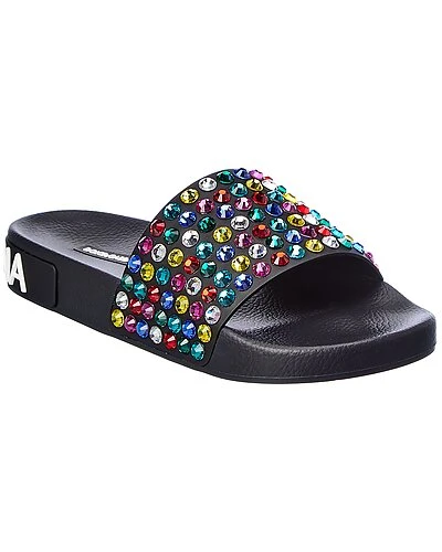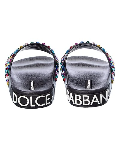 - Crystal Leather Slide in black leather with multicolor crystal embellishments