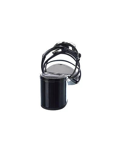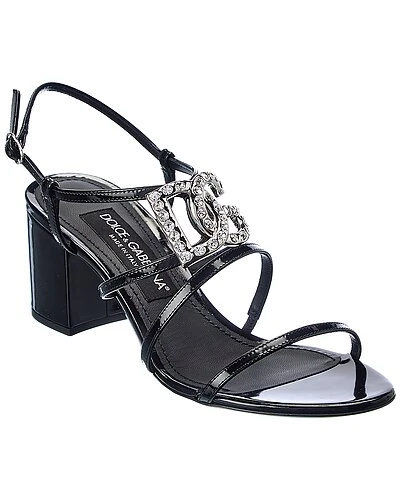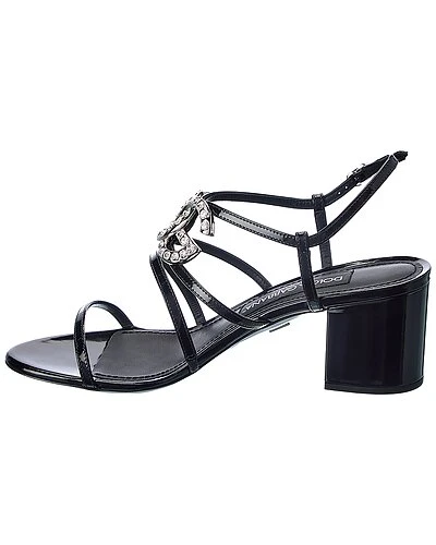 - DG Leather Sandal in black leather and silver-tone hardware with crystal-embellished logo