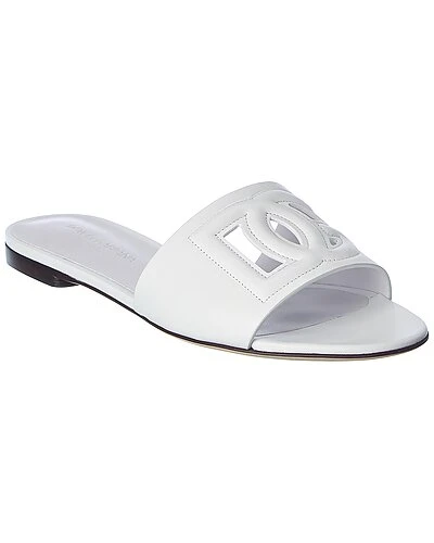 - DG Logo Leather Sandal in white leather with cutout details