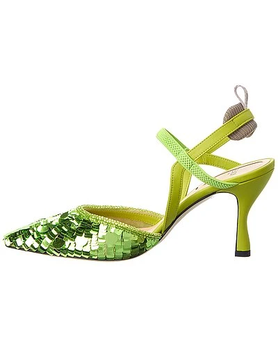- Colibri Lite Sequin Silk & Leather Slingback Pump in green silk and leather and gold-tone hardware with sequin embellishments and padded back