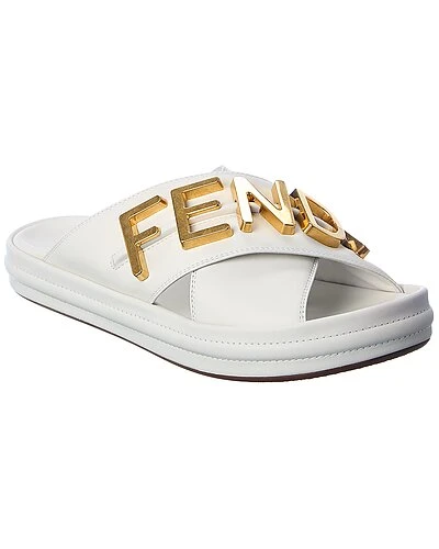 - Karligraphy Leather Sandal in white leather and gold-tone hardware with logo accent