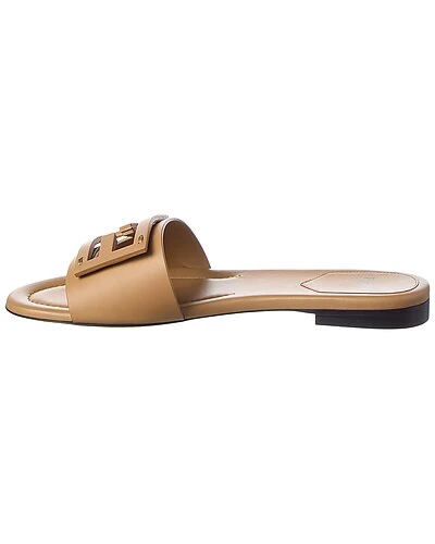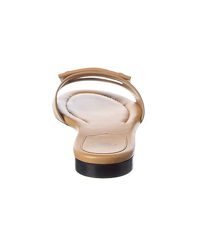 - Signature Leather Sandal in brown leather with cutout logo vamp