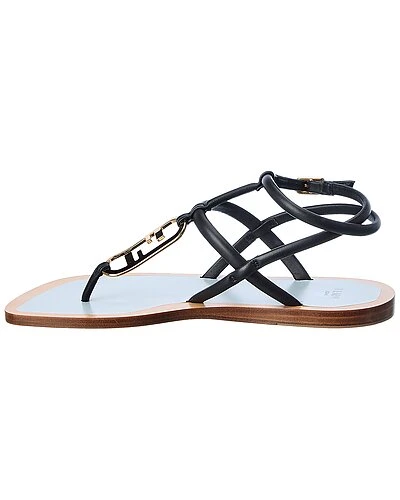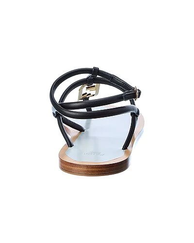 - Leather Sandal in black leather and gold-tone hardware with logo accent