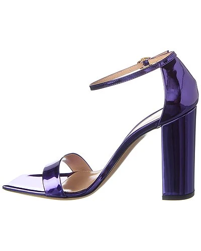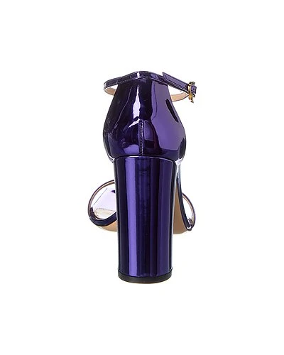 - 100 Leather Sandal in metallic indigo leather and gold-tone hardware with logo buckle