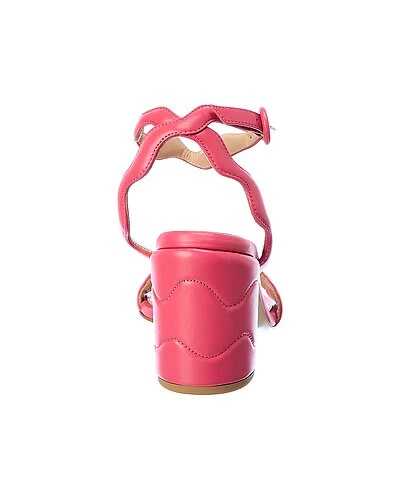 - 85 Leather Sandal in pink leather and silver-tone hardware with scalloped trim and stitching at heel