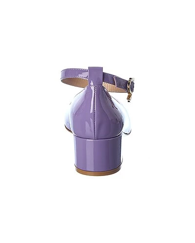 - Ribbon Patent Pump in lavender patent leather and gold-tone hardware with round toe