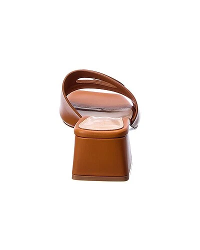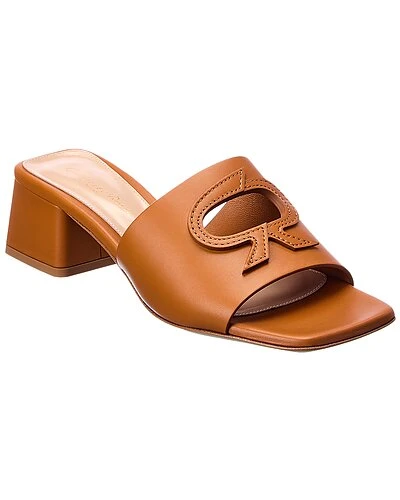 - Ribbon Slide 45 Leather Sandal in brown leather with cutout logo