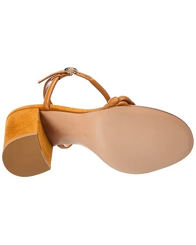 - Cruz 85 Leather & Suede Sandal in sienna leather and suede and gold-tone hardware with braided strap