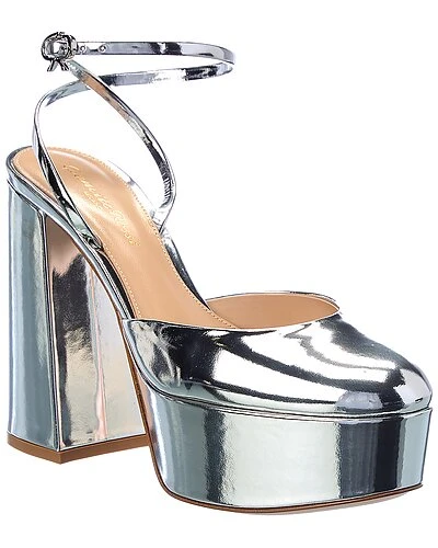 - Dua 70 Leather Platform Pump in silver leather and silver-tone hardware with logo buckle