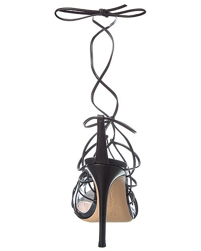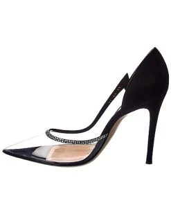 - Miria 105 Leather & Vinyl Pump in black leather and transparent vinyl with pointy-toe and lace-up detailing