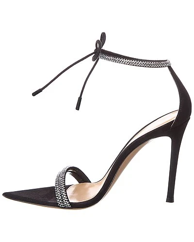 - Montecarlo 105 Suede Sandal in black suede with crystal embellishments and pointy-toe