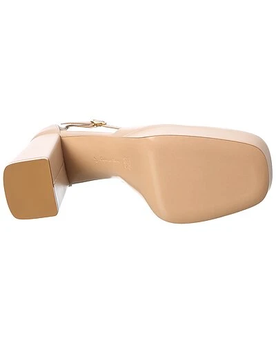 - Vian 70 Leather Platform Pump in nude leather and gold-tone hardware
