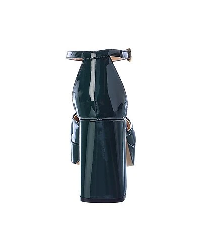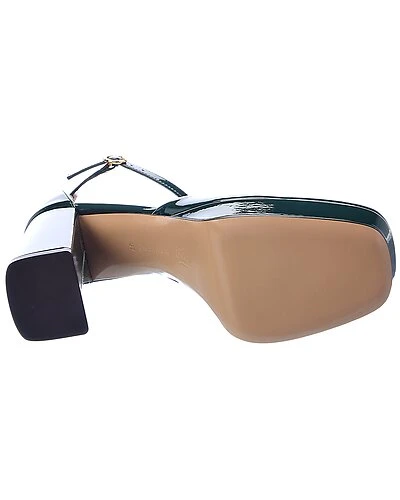 - Vian 70 Patent Platform Pump in dark green patent leather and gold-tone hardware with round buckle