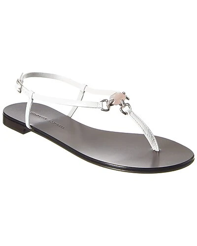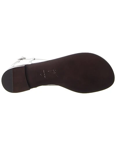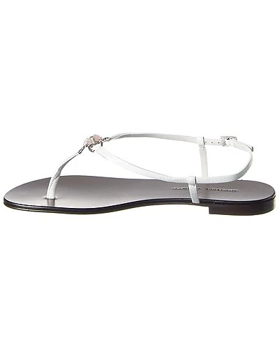- Leather Sandal in white leather and silver-tone hardware with rose quartz accent