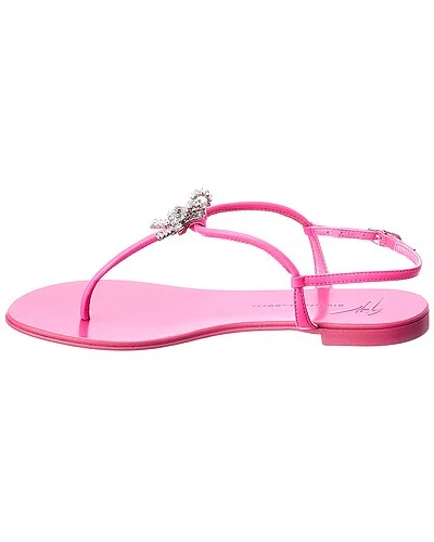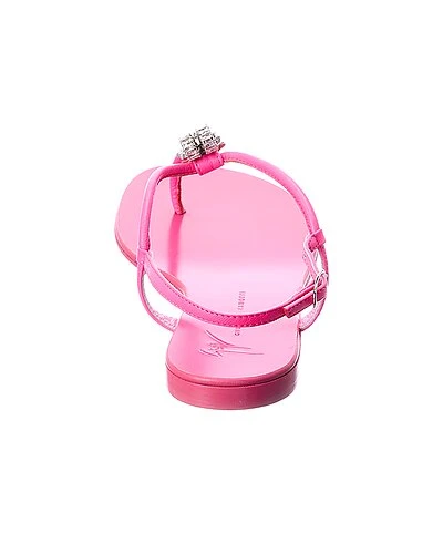 - Rock Leather Sandal in fluorescent pink leather and silver-tone hardware with crystal-embellished bow