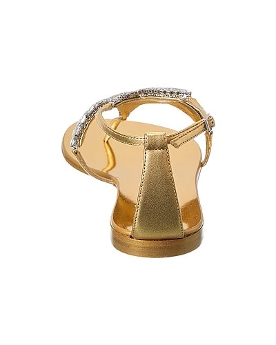 - Rock Leather Sandal in gold leather and silver-tone hardware with crystal embellishments