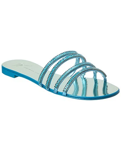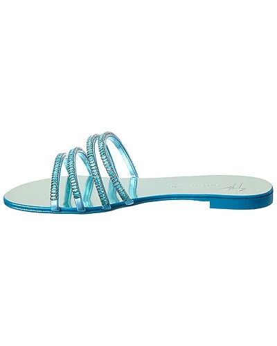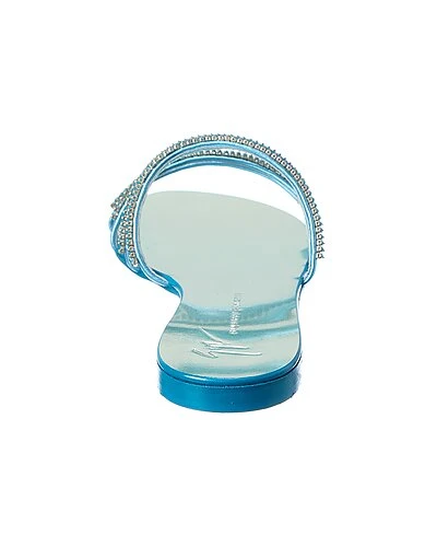 - Roll Leather Sandal in metallic blue leather and silver-tone hardware with crystal-embellished straps