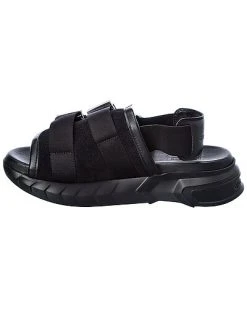 - 4G Leather Sandal in black leather and silver-tone hardware with logo accent