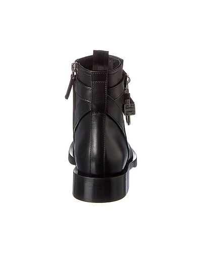 - Lock Leather Bootie in black leather and silver-tone hardware with padlock detail