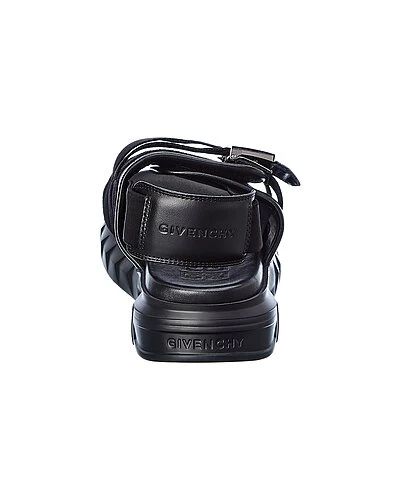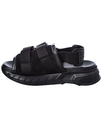 - Marshmallow Leather Sandal in black leather and suede and silver-tone hardware with logo buckles and elasticized strap