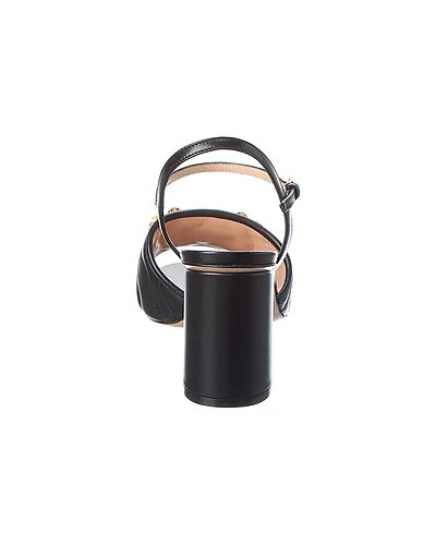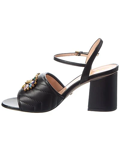 - GG Leather Sandal in black quilted leather and light fine gold hardware with interlocking G logo with gem embellishments