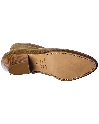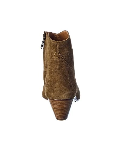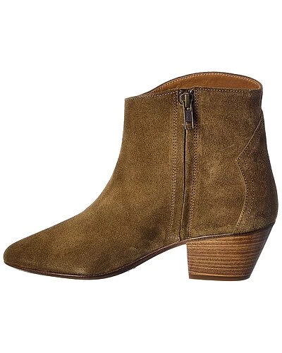 - Dacken Suede Bootie in taupe suede and gold-tone hardware
