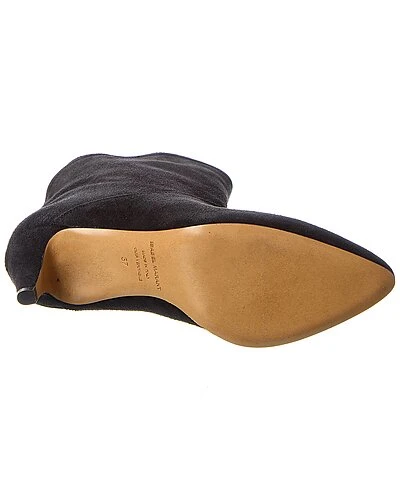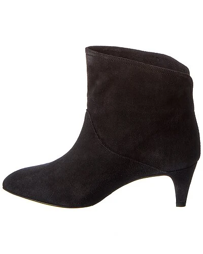- Defya Suede Bootie in faded black suede with pointy-toe