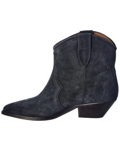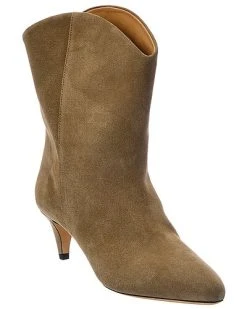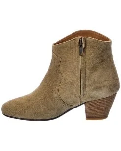 - Dernee Suede Bootie in taupe suede with pointy-toe