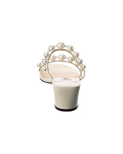 - Amara 45 Leather Sandal in latte leather with bead and pearl embellishments