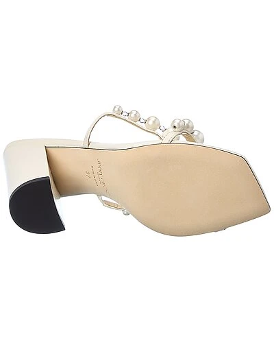 - Amara 85 Leather Sandal in latte leather and silver-tone hardware with crystal and pearl embellishments