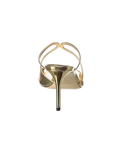 - Anise 75 Leather Sandal in gold liquid metal leather with strappy design and squared toe