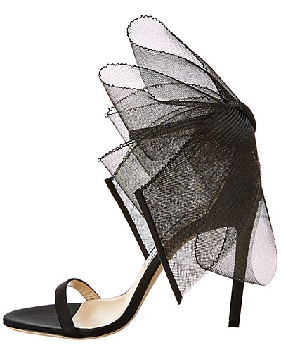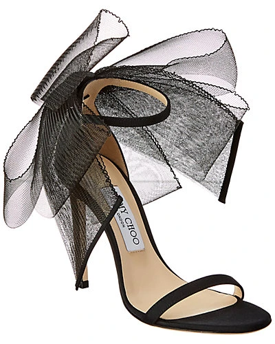 - Aveline 100 Asymmetric Grosgrain Sandal in black grosgrain with tulle bow